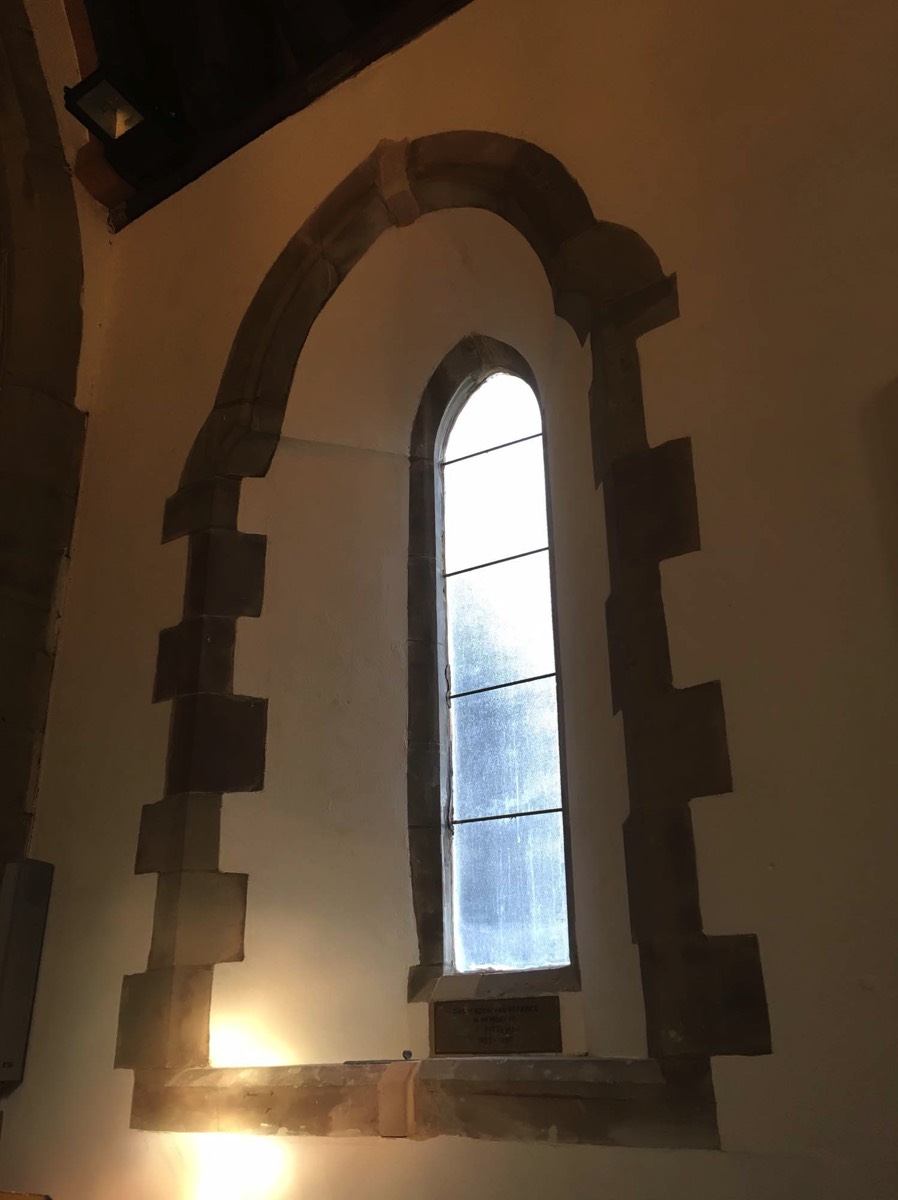 The main crack across a window, caused by the chancel subsidence